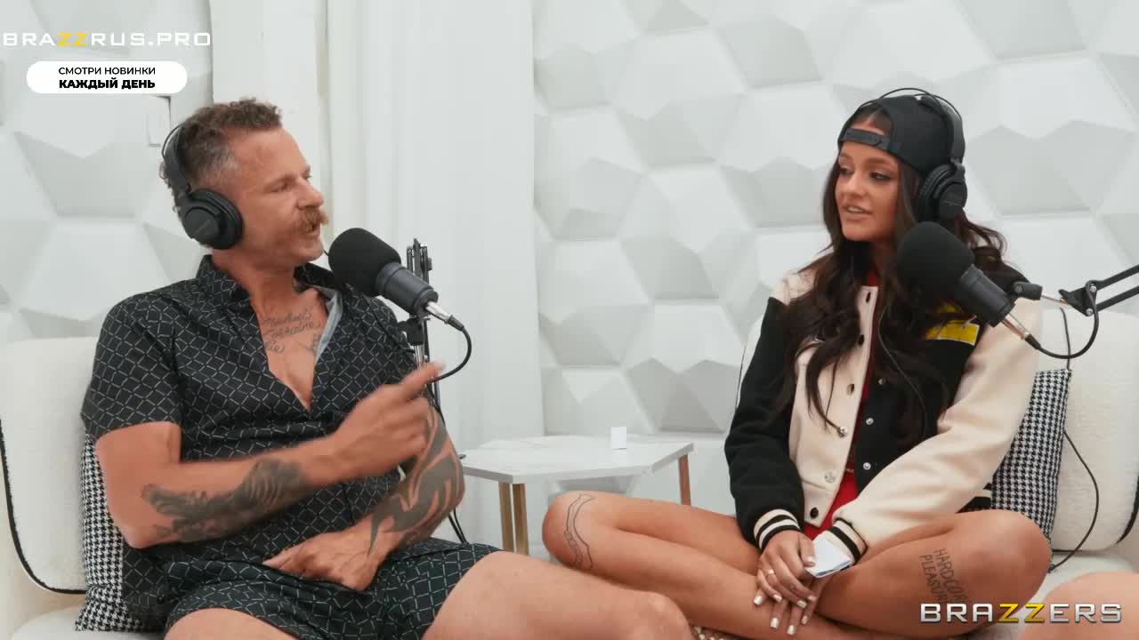 Словно закадычные друзья на подкаст Браззерс собрались трое порноактеров: две молоденьких девушки и 52-летний мужчина. Ему хочется уже побыстрее начать, но в задачах сидеть и отвечать на вопросы, заданные зрителями из твиттера. Довольно горячие девчонки все же согласились сделать двухминутный перерыв, на самом деле, продлившийся чуточку больше. Для этого они спустились в подвальное помещение со студийной техникой, где телочки сделали то, о чем только что говорили. Скотт вернулся выжатым как лимон. Несмотря на возраст, он без проблем справился с двумя начинающими звездами.
