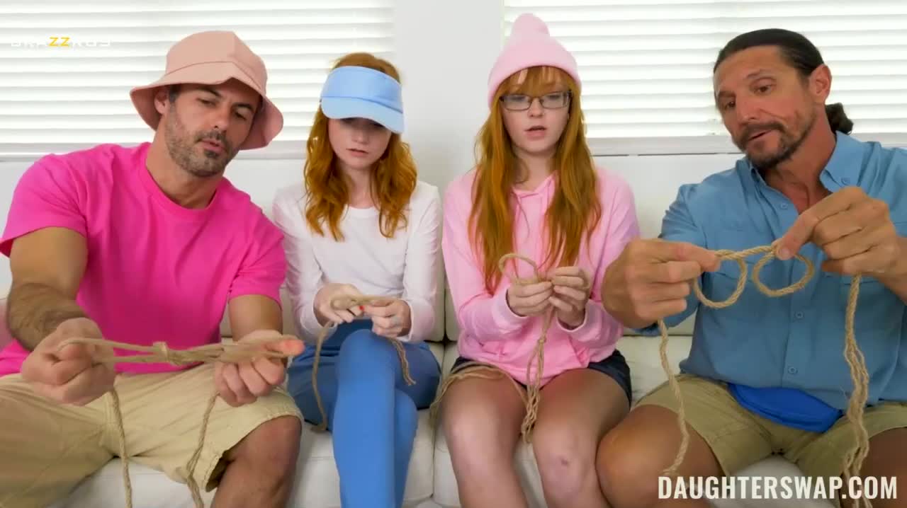 Подружки собрались у одной из них дома, собираясь пойти в поход в лес. Но погода плохая и потому два отца решили сперва научить ставить палатку на заднем дворе. Это рыжим девочкам совсем не понравилось и они стали дурачиться, показывая четыре сисечки в сторону селфи-палки с телефоном. Это заметили мужчины, которые наедине вспомнили как были молодыми и договаривались завести себе по приемной дочери, чтобы вырастить их примерно одинакового возраста и начать ими пользоваться. Сегодня именно тот момент когда они стали достаточно взрослыми, являясь еще совсем молодыми. Пора рыженьким малышкам отведать членов!