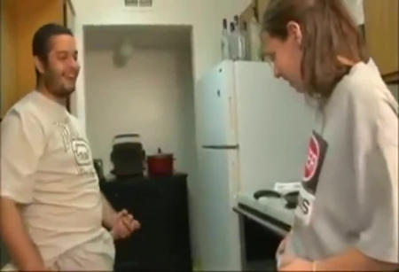 Monsters of Jizz представляет брата, который пришел будучи возбужденным на кухню к сестре без штанов. Он стал приподнимать ее футболку, чтобы посмотреть на щуплую задницу, но пару раз получил отказ, а потом сестричка увидела насколько выпирают у того штаны. Наглец вытащил хер наружу и стал наяривать перед сестрой, на что родственница среагировала, оставив свое тело без одежды. Она взяла в обе руки ствол и принялась гонять шкурку, а потом и вовсе захотела попробовать братика на вкус. К слову, она будто была готова к неимоверному количеству спермы, выпущенного ей на лицо. Как думаете, она искусственная?