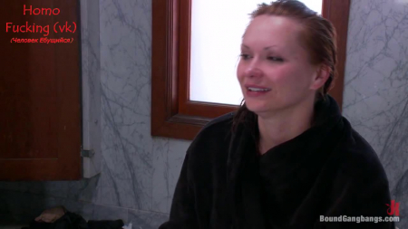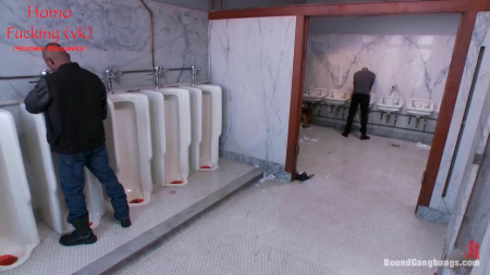 Рыженькая симпатяга попила кофе на обеде и собралась посетить туалет перед офисом. Она не заметила, что со спины на холмике за ней наблюдает пара десятка глаз недоброжелателей смуглого оттенка кожи. Вся толпа ринулась следом и заперла за собой дверь в мужском сортире. Телочку принудительно освободили от юбки и блузки - грязные руки лапали красивую женщину везде, где только можно и нельзя, а чуть позже заставили ее сосать все черные члены. Как бы тут не было грязно в общественном туалете, ее пустили по кругу не только стоя, но и заставили заниматься тройным сексом на полу.