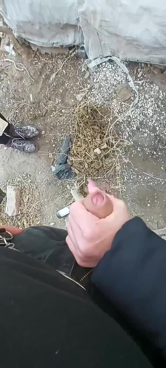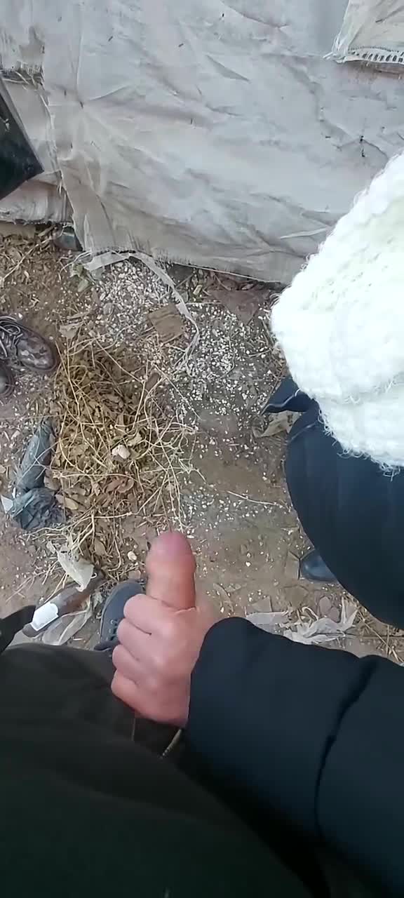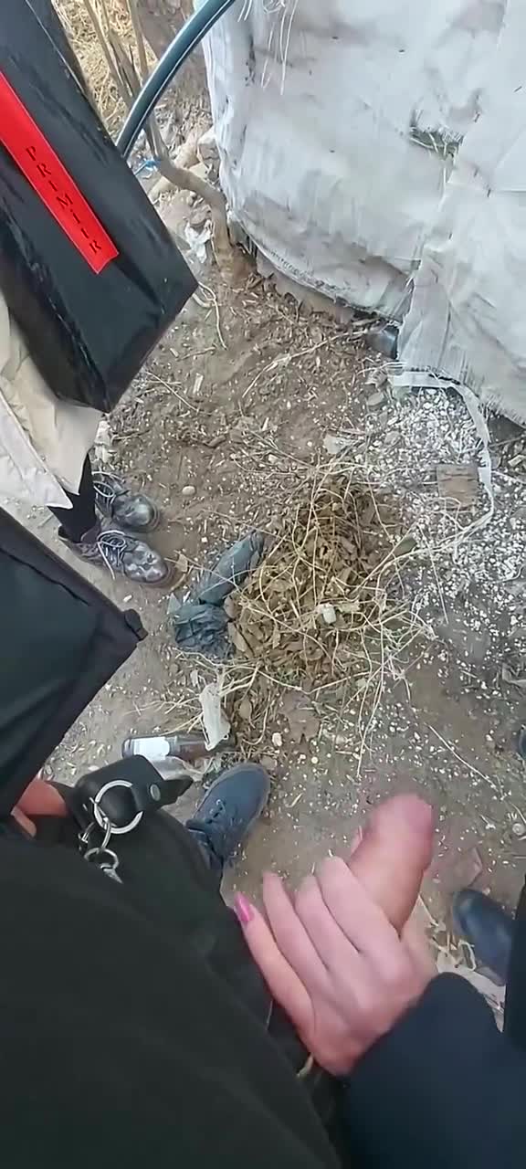 Неизвестно при каких обстоятельствах троица оказалась за какими-то разбомбленными гаражами в холод, но суть в том, что парень дрочил член при двух телочках и предложил кому-нибудь "попробовать". Та что справа с удовольствием взяла его хуй в крепкую руку и стала гонять его шкурку, стоя сбоку. На просьбу вторая не ответила положительно, но сказала, что просто посмотрит. Так продолжалась съемка на телефон несколько минут пока из головки на землю не показала сперма. Девица все сильнее сжимала ствол, легонько подрачивая, будто пыталась выдавить оттуда все без остатка. Молодому человеку очень это понравилось.