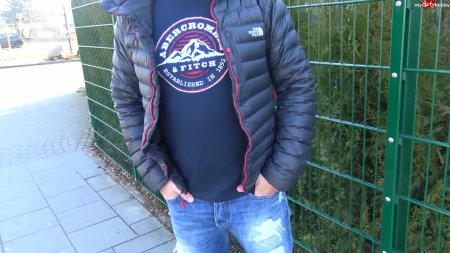 Немка выпрыгнула из кожаных штанов перед незнакомцем с улицыHD