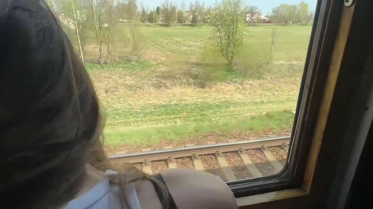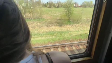 Движущийся состав по необъятной слегка замедлился, это значит парочка извращенцев проезжает мимо еле живой полузаброшенной деревушки. Член уже перед лицом девушки, но дабы не показывать личико, красотка совсем немного сосет, потом подрачивает ствол двумя опытными руками, трахая его еще и здоровенными сиськами. Стоит заметить размер сосков - мое почтение, да и формы что надо! А самое главное, что их обладательница очень любит устраивать для себя сексуальные приключения, как в этот раз она расшатала столик купе поезда при сексе с бойфрендом, снимающим от первого лица домашнее порно.