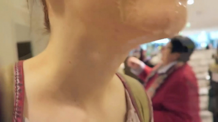 Фистит попку и после ходит с искусственной спермой на лице по магазинуHD