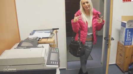 Очаровательная блонда зашла в конце рабочего дня попрощаться с коллегой и как бы случайно показала ему свою большую упругую грудь. Дело в том, что шлюшка уже давно "приглядывалась" к мужчине и вот наконец-то телка нашла способ, чтобы уединиться с предметом своего обожания. Крепкий молодой мужчина естественно не оказался равнодушным к женским прелестям - он выебал сексапильную крошку на офисном столе.