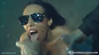 После безудержного группового соития, два мужчины в деловых костюмах кончают на личико своей любовнице. Симпатичная милашка в солнечных очках с огромным удовольствием принимает на личико теплую жидкость, широко открыв рот при этом.