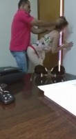 Коллеги по работе давно практикуют секс на работе по-быстренькому. Парочку очень возбуждает страх быть застигнутыми в любой момент, любовники получают более сильные эмоции, что их "затягивает" как наркоманов. Вот и в очередную свободную минутку парочка принялась сношаться словно кролики. Пока мужчина ебал телку, она "на стреме" еще стояла (то есть смотрела в приоткрытую дверь).