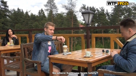 Двое друзей вышли в один из солнечных дней прогуляться и пообщаться. Ребята зашли в летнее кафе, где за столиками кроме них сидела симпатичная брюнетка. Парни разговорились с девушкой и решили применить к ней технику пикапа. Девушка попалась без серьезных моральных принципов, поэтому сразу пошла на контакт с молодыми людьми. Воодушевившись первыми успехами, друзья осмелели и предложили брюнетке секс за деньги. Пока она якобы думала, малышка продемонстрировала большую грудь и конечно же согласилась. Пикаперы увезли девушку на стройку. Один пристроился к девке сзади и отымел ее в вагину, а второй пристроил член у брюнетки в ротике. Потом троица переместилась на траву и любовные утехи продолжились уже там. Когда пикаперы на стройке трахнули брюнетку за деньги, они просто убежали.