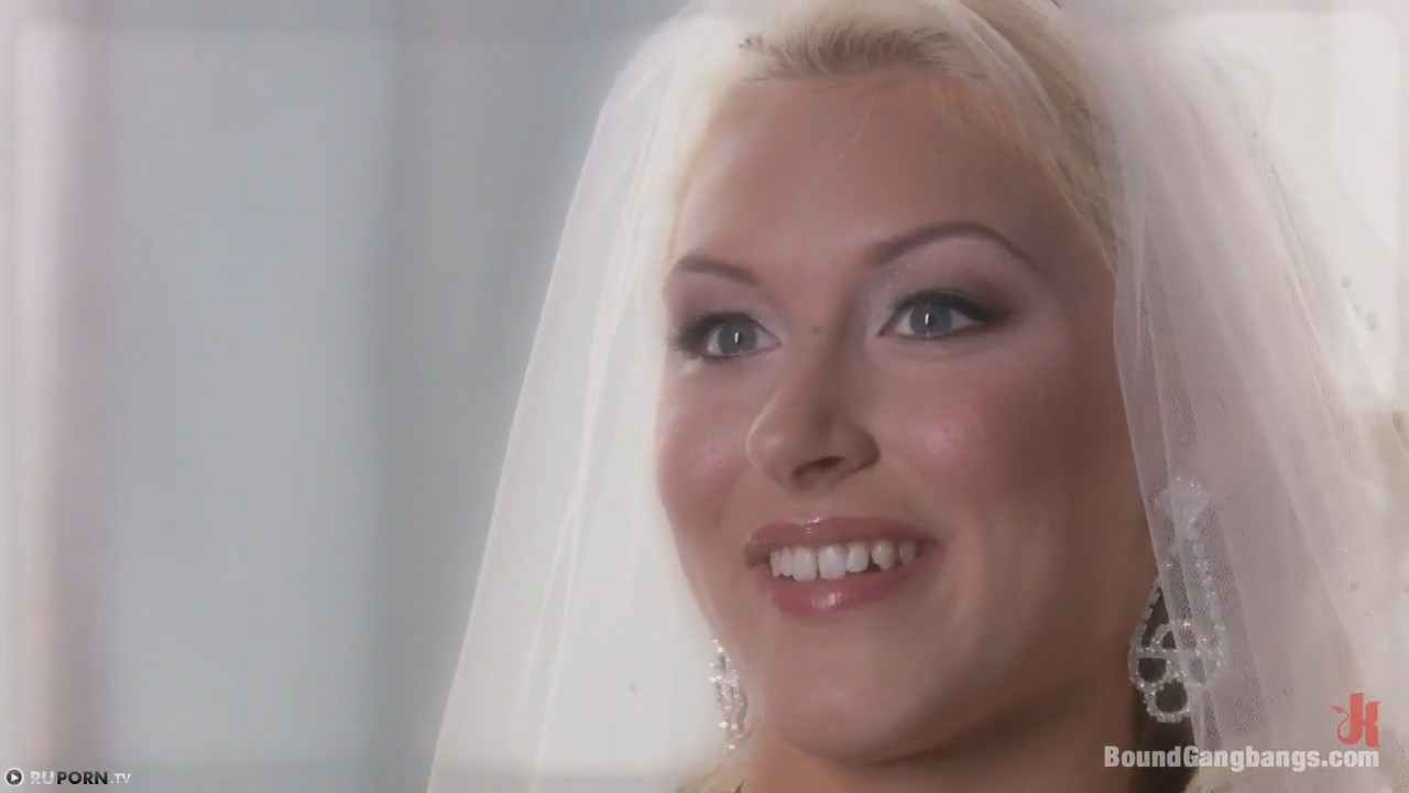 вот позади пышная свадьба и впереди ночь, полная страсти и любви! Но не тут то было. Пока супруг ходил за ведерком со льдом, чтобы шампанское охладить, в комнату ворвалась целая группа воров. Мужчины сразу же связали сопротивляющуюся невесту и стали поджидать ее молодого мужа. Привязав руки мужчины к спинке кровати и заткнув ему рот, незнакомцы отодрали его молодую жену во все щели, после чего закончали прелестное личико и упругую грудь.