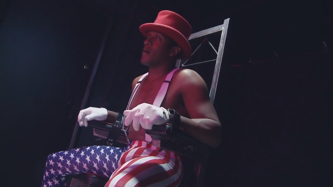 Поистине мучительным и одновременно завораживающим стало представление сексапильной блондинки для мужчины, руки которого были привязанными к креслу. Пленительная шалунья в чулках и корсете, который выгодно подчеркивал аппетитную выпуклость, не единожды вызвала желание у чернокожего самца. Вы только посмотрите, как очаровашка теребит свои сиськи, или как девушка на резиновом члене скачет. Но не доведя себя до оргазма, развратница встает с игрушки и направляется к мужчине, через тонкие лосины которого виднеется напрягшаяся плоть. Легкое прикосновение к большому агрегату вызывает у мужчины безумное блаженство - ведь уже долгое время, показавшееся ему целой вечностью, мужчина находится в перевозбужденном состоянии. Милашка не торопясь отсасывает черный ствол, а после подставляет вагину для сладострастного соединения жаждущих чресел.