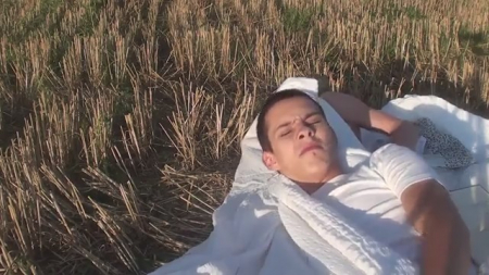 1) Удобно расположившись среди скошенной травы, ребята ласкают друг друга, пробуждая желание невиданной силы. И вот когда уже терпеть сил не остается, ребята сношаются под открытым небом;