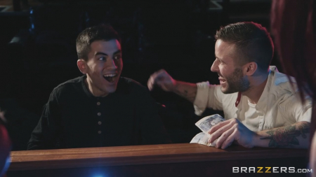 Подсчитывая заработанные деньги, распутницы остаются не слишком довольны - сумма набралась небольшая. Но судьба словно дарит девкам шанс заработать еще - старший товарищ привел в клуб более молодого и неопытного друга. Девушки сначала не хотели "заниматься" клиентами - ведь рабочий день уже закончен - но, увидев нескромную сумму, милашки быстренько меняют свое мнение. Исполнив будоражащий танец, сисястая милф и молодая негритяночка переключают все свое внимание на юнца с большим членом. Тут второй мужчина достает еще деньги, потому что тоже захотел женского внимания. Но шлюшки обманывают его - деньги берут, а ебутся с молоденьким.