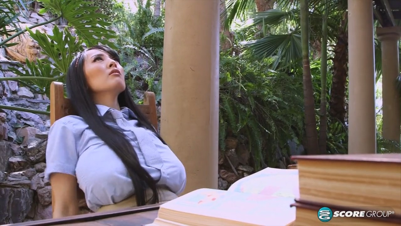 Привлекательная азиаточка возвращается после занятий домой и решает позаниматься на террасе - ведь в такую погоду грех сидеть дома. Но как же скучно постоянно что-то зубрить, когда мысли вовсе не об учебе. Некоторое время спустя симпатяга откладывает учебник в сторону. Убедившись, что никого рядом нет, девушка начинает потихоньку наглаживать большую грудь. По мере возбуждения и ласки становились все более жаркими, пока наконец не довели милашку до мастурбации - девушка потерлась вагиной об угол стола для начала, а после завершила начатое, ловко поработав пальцами.