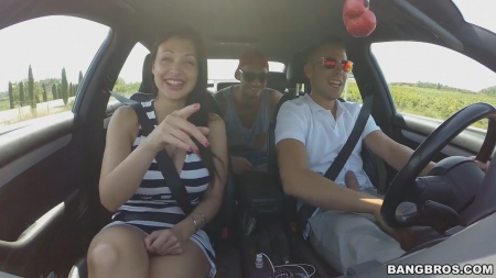 Очаровательная брюнетка поехала отдохнуть с любовником и его другом. Веселая беседа плавно перетекла в потрясающий минет - милаха, абсолютно не стесняясь постороннего человека в машине, просто наклонилась к водителю и отслюнявила его хер. Доехав до места назначения в интимной обстановке, любовнички не остановились на этом, а наоборот продолжили ласкаться - ведь предварительные ласки лишь разбудили страсть молодых людей. Повалив силиконовую куклу на песок, мужчина вдоволь насытился всеми остальными щелками, вогнав толстенный хуй для начала в вагину, а уж после в раздолбанный попец - на десерт, так скажем, оставил.