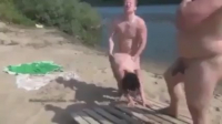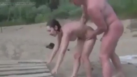 Стройная малышка поехала отдыхать с двумя друзьями. На пустынном пляже ребята решили купаться голышом, только это решение имело свои последствия. Мужики испытали желание при виде сексапильной обаяшки, а девчонка просто решила ответить на приставания - ну в крови у нее было давать всем подряд, отказаться не могла. И вот один из любовников, уткнув милочку лицом в песок, пристроился к ней сзади и отымел милаху в вагину. После непродолжительного, но бурного полового акта короткостриженная шлюшка искупалась в речке и не успела толком выйти, как второй ебарь уже начал требовать дырку.