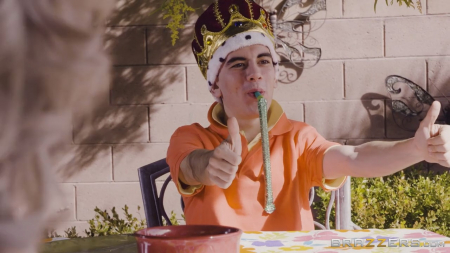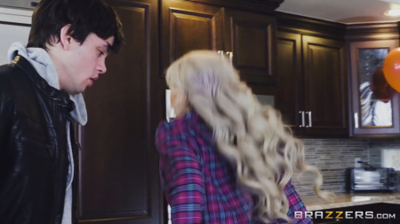 Молодой человек пришел к друг на день рождения и обалдел, ведь такого он точно не ожидал. Без лишних слов развратная мама друга достала его член из штанов и начала теребить. От шока парень вырвался и хотел все рассказать другу, но вот только ему было некогда - ласкал большую грудь маминой подруги. Пребывая все в том же состоянии шока, молодой человек повернулся к дому и увидел мастурбирующую соблазнительницу. В общем, больше бороться с собой парень не стал и с головой окунулся в негу страстных объятий сексуальной блондинки.