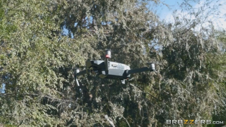 Молодой человек подглядывал за своей соседкой с помощью дрона, да и как не подглядывать за такой очаровашкой? Длинноволосая брюнетка, без сомнения, вызывает восхищение. Вот только шпионаж не удался - после непродолжительного зрелища дрон был обнаружен (точнее сказать, девушка его поймала). В свою очередь симпатюля решила поснимать на камеру мобильника соседа, заставив того раздеться. И как только развратница увидела размеры мужского достоинства, она без облома обхватила член губками. Про телефон вскоре было забыто и парочка предалась любовным играм под открытым небом.