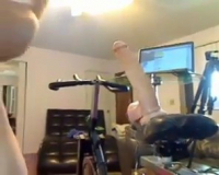 Эта сексуальная выдумщица придумала очень оригинальное занятие спортом. Девушка присоединила резиновый член к сиденью велотренажера и начала заниматься. Девушка садится на член и стонет от удовольствия. К тому же блондинка сняла себя на любительскую видеокамеру.