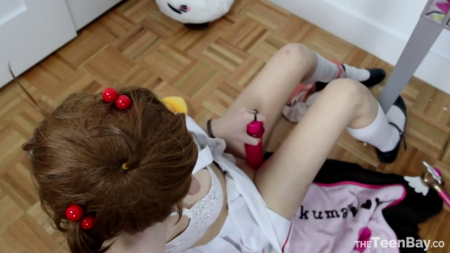 Очаровательную малышку очень уж заводит один персонаж - прям аж с ума симпатюля сходит. В свободное время даже наряжается в любимую героиню и устраивает развратные игры с различными атрибутами. Один из таких актов на полу выпадает шанс увидеть и вам, дорогие зрители. Сексапильная худышка с аппетитными сиськами яростно надрачивает дырочку - остановиться просто сил нет, даже в порыве страсти втыкает в узенький анус анальную пробку - некоторое время спустя подуставшая киска все же доводит себя до оргазма.