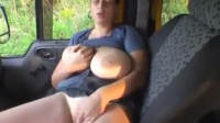 Мужик на микроавтобусе ждал на вокзале, пока к нему сядет какая-нибудь интересная девушка. И вот она, с виду ничем не примечательная брюнетка. Но это если смотреть на лицо, а вот если опустить взгляд пониже, то начинаешь понимать, почему именно ее подвез мужчина. Огромные дойки размера не меньше шестого, да еще и игривый взгляд... Не дожидаясь приезда домой, она уже успела помастурбировать в машине, приняла член в рот, и наконец, успела почувствовать в своей киске горячую сперму водителя.