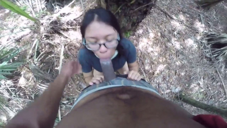 Нацепив экшн камеру гоу про на голову, негр решил записать свои похождения с азиатской подругой по лесам Южной Амазонки. Они весело гуляли под ручку, как до сникерса дошло, что в этом лесу они похоже одни. Так что по команде девушка сняла юбку, нигра задрал ей футболку, и быстренько присунул сзади, поставив ее раком, при этом, конечно же, забыв отключить запись с камеры. Далее он попытался трахать узкоглазую на весу в неком аналоге миссионерской позы, но в итоге решил закончить все обильным сливом спермы ей в ротик, чтобы не запачкать ей очки. Забота-с.