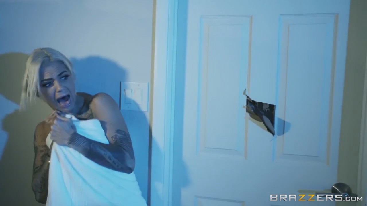 Девушка явно перебрала с выпивкой, раз уснула на вписке. Но это еще пол беды - ей приснился настоящий кошмар, как ее в этой же комнате насилует маньяк. С кем не бывает, подумаете вы, но учитывайте, что это был вещий сон с четверга на пятницу... Можно сколько угодно не верить в приметы, но уже через час входную дверь выбивал топором тот самый парень в маске. Бедная брюнетка уже мысленно попрощалась с жизнью, но как только через дырку показался член - она вздохнула с облегчением и не только капитально отсосала маньяку член, но и дала в жопу.