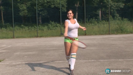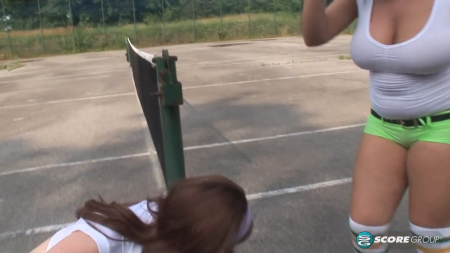 Две девчонки с грудями сильно выше средней нормы решили сыграть в большой теннис. Ракетки выданы, орбитр - оператор готов засчитывать будущие победы, а девчонки - играть на победу. Но после пары раундов выясняется, что их обтягивающие белые маечки очень сильно мешают им сосредоточиться на игре, поэтому они сначала выливают на себя воду, чтобы грудь не перегревалась от солнечных лучей, а затем быстро от них избавляются, размахивая сиськами на всю катушку. Увы, теннис быстро им надоедает, и они находят куда более веселое занятие - тереться бидонами друг об дружку и лопать ими шарики с водой.