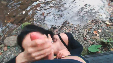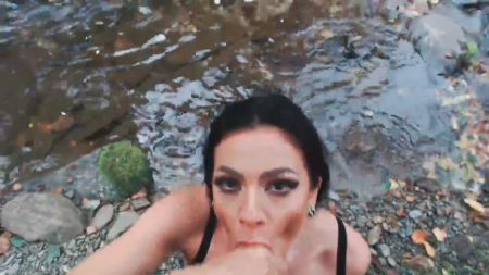 Знаете, зачем люди идут в горы? Правильно - посмотреть на красоту, уединиться с природой и посмотреть на сногсшибательные водопады. И вот, пара часов пути, и заветная вода, звонко летящая с гор, уже находится в прямой видимости. Дело сделано, можно похвалить себя и наслаждаться видами. Но знаете, порой даже в такие моменты счастья чего-то все таки не хватает. И сейчас лишним не будет наличие грудастой брюнетки, которая на фоне залива будет насасывать тебе член. О, черт, так это же та подруга, которая с тобой покоряла вершины! А ну-ка стой, сучка, у меня к тебе есть дельное предложение, от которого невозможно отказаться...