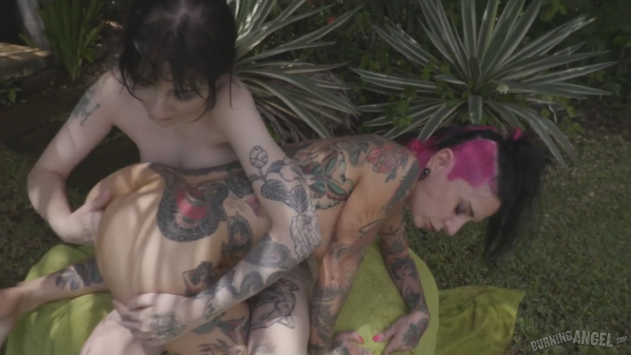 Девушки, полностью покрытые татуировками - это на любителя. Кого-то безумно заводит, а кто-то довольно равнодушен. Но мы знаем, что порадует любого зрителя - это нежные и одновременно стремительные лесбийские игры. Брюнетки нашли настоящий источник пресной воды, который, как тропический душ, лился с лианы прямо на них. Используя воду как смазку, подружки начали ласкать друг дружку, не забывая и про слегка агрессивную мастурбацию. Ближе к конце они вообще попробовали фистинг - три пальца в попке оказались предельными, но удовольствие девушки получили весьма недурное.