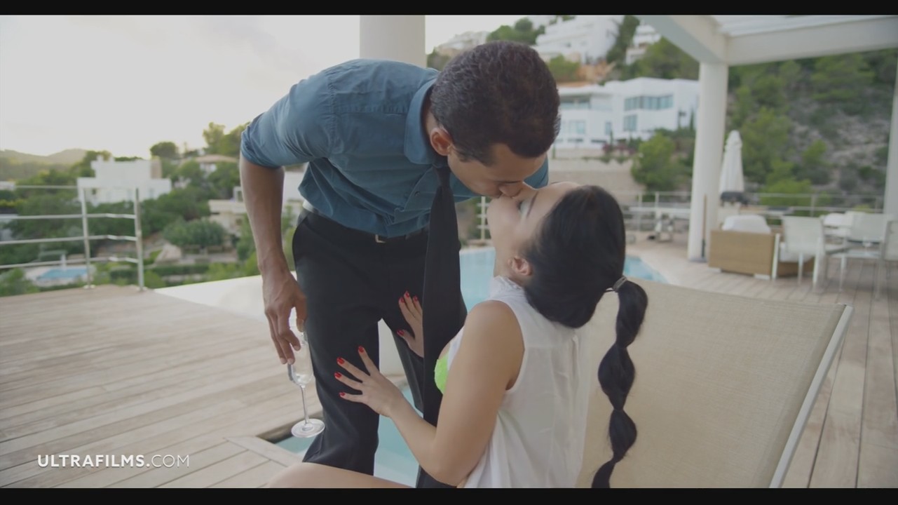 Русская Наташа устроила себе просто сказочную жизнь. Она живет в пентхаусе заграницей, загорает, томясь на шезлонге, который находится на освещенной вечерней террасе. Да и еще ее бойфренд, по счастливой случайности чернокожий, этим вечером приносит ей бокал шампанского. Да после такого обслуживания и условий жизни, любая баба в жопу даст, а не только она. К тому же этого черного засранца интересует только анальный секс, так что он максимально красиво и элегантно сначала дал ей насосаться вдоволь, а затем аккуратно трахнул ее в попку, засаживая в анус свой внушительный член. Он был мастером своего дела, так что Наталья получила только удовольствие, от которого она улыбалась и закатывала глаза.