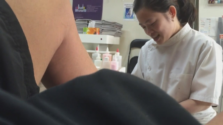 Традиционная японская массажистка Mitsuki Momota с частичным разблюриванием