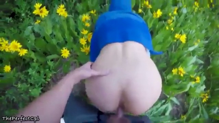 Какие великолепные желтые одуванчики, скажете вы. Но важнее то, что происходит на их фоне. Веселая парочка, выбравшись на природу подальше от людей, заприметили эту полянку, да забили ее на денек. Только не шашлыки пожарить, а скорее, отжарить партнершу в дупло, что и являлось конкретной целью парня. Поставив свою леди раком, он сперва размял себя и ее классическим вагинальным сексом, а спустя пару минут уже перешел на заветное отверстие для избранных. Начав с медленной скорости, через мгновения он уже со скоростью спиди-гонщика ебал в сраку бабу, да так увлекся, что как только вынул хер, сразу же кончил ей на попку.
