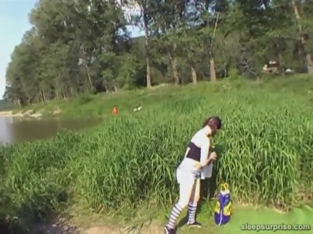 Какие прекрасные пригородные будни нашей загнивающей Европы. Какая-то баба, возвращаясь домой в продуктами, решила зайти в местный ларек-кафе и соснуть пивца. И так оно ей дало в мозги, что она пошла за кафешку в кусты, чтобы поссать стоя - настолько мужественно она себя почувствовала. Но этого ей показалось мало, так что девушка легла почти в свою ссанину и начала пихать в пизду уже пустую бутылку из-под пива. Но прошедшее печень спиртное вырубило ее, а там как раз какой-то местный бомж тоже зашел отлить в кусты. А тут такая, лежит, с бутылкой в пизде. Он взял ее, да и выебал, пока она была в отключке, благо, что кончил в рот, а мог бы и сюрприз ей устроить.