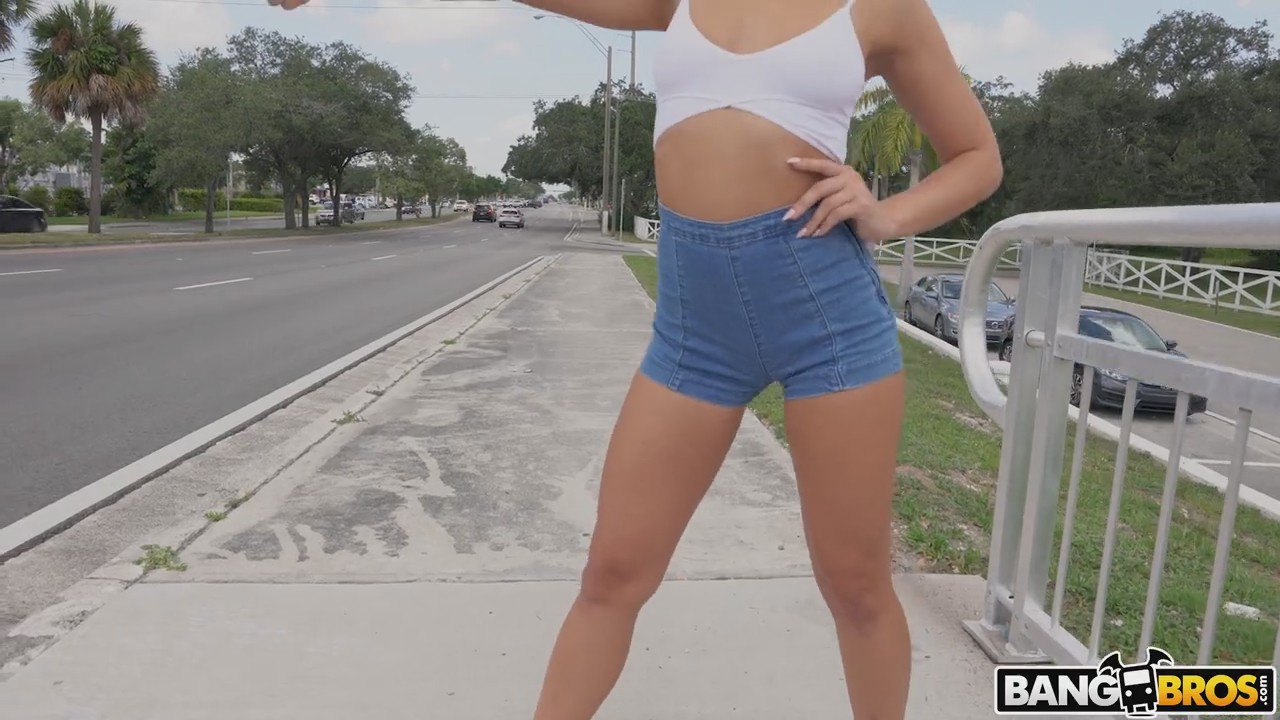 Мы уже многое видели - и секс на публике, и всякое подобное уже было в нашей жизни и опыте просмотра различной порнухи. Но специально пороться в очко перед прохожими, намеренно отправляя им воздушные поцелуи - это новая веха развития испанского стыда. Брюнетка начинает веселье еще по дороге - светит жопой и грудью, забравшись в кузов пикапа прямо на автостраде. Затем начинает сосать в пешеходном переходе, но поняв, что народу тут нет, ей становится скучно и она просит поменять дислокацию. Даже парень на всякий случай надел маску, от греха подальше, а ей все нипочем. Что долбиться в анус перед садовником, махая ему ручкой, что отсылая поцелуи дальнобойщикам.