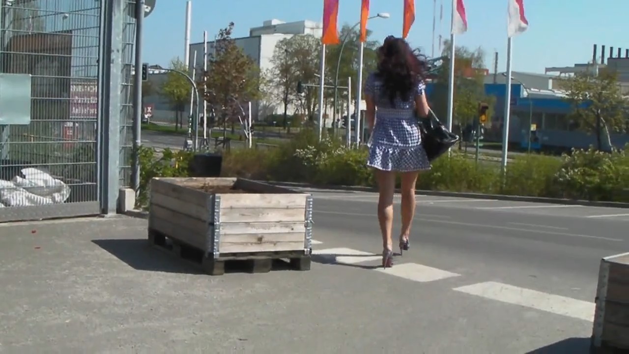 Моральные нормы - чересчур расплывчатая штука. Кому-то тяжело попросить незнакомого человека помочь, кто-то может смеяться над инвалидами, а есть эта брюнетка. И ей абсолютно нормально присесть в клумбу на оживленной и проходной улице, а затем начать мастурбировать. И не просто рукой, а большим прозрачным фаллоимитатором. От приступа адреналина организм девчонки ловил дичайшие оргазмы, а ее лицо принимало совершенно разные выражения. Как бы то ни было, в итоге она обсосала еще раз дилдо, и помчалась дальше по своим делам.