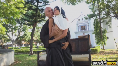 Лысый из браззерс все никак не унимается и бегает за каждой жопой в округе. И сегодня он решил сходить в церковь по наставлению отца, только вот вместо священников он увидел монашку, на которую посмотрел так, что та мгновенно потекла от такого взгляда. Целомудренный образ жизни сделал свое, и вот она уже вылетает через черный выход на улицу и идет с лысачом в ближайших церковный парк, где долго мокреет от того, как он лапает ей жопу, а затем грешники пристраиваются на скамеечке, и прямо так начинают совокупляться как кролики - сколько же у монашки до этого не было секса?