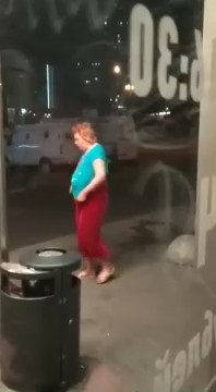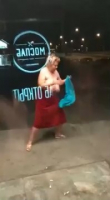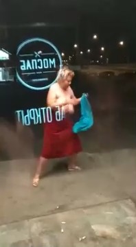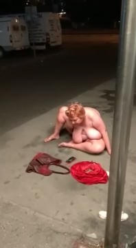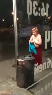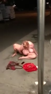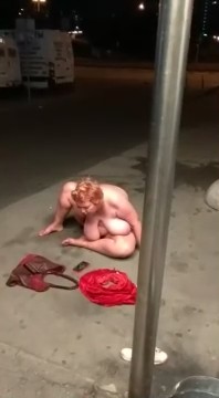 Поехавшая бабка показывает молодежи как дрочить прямо на улице